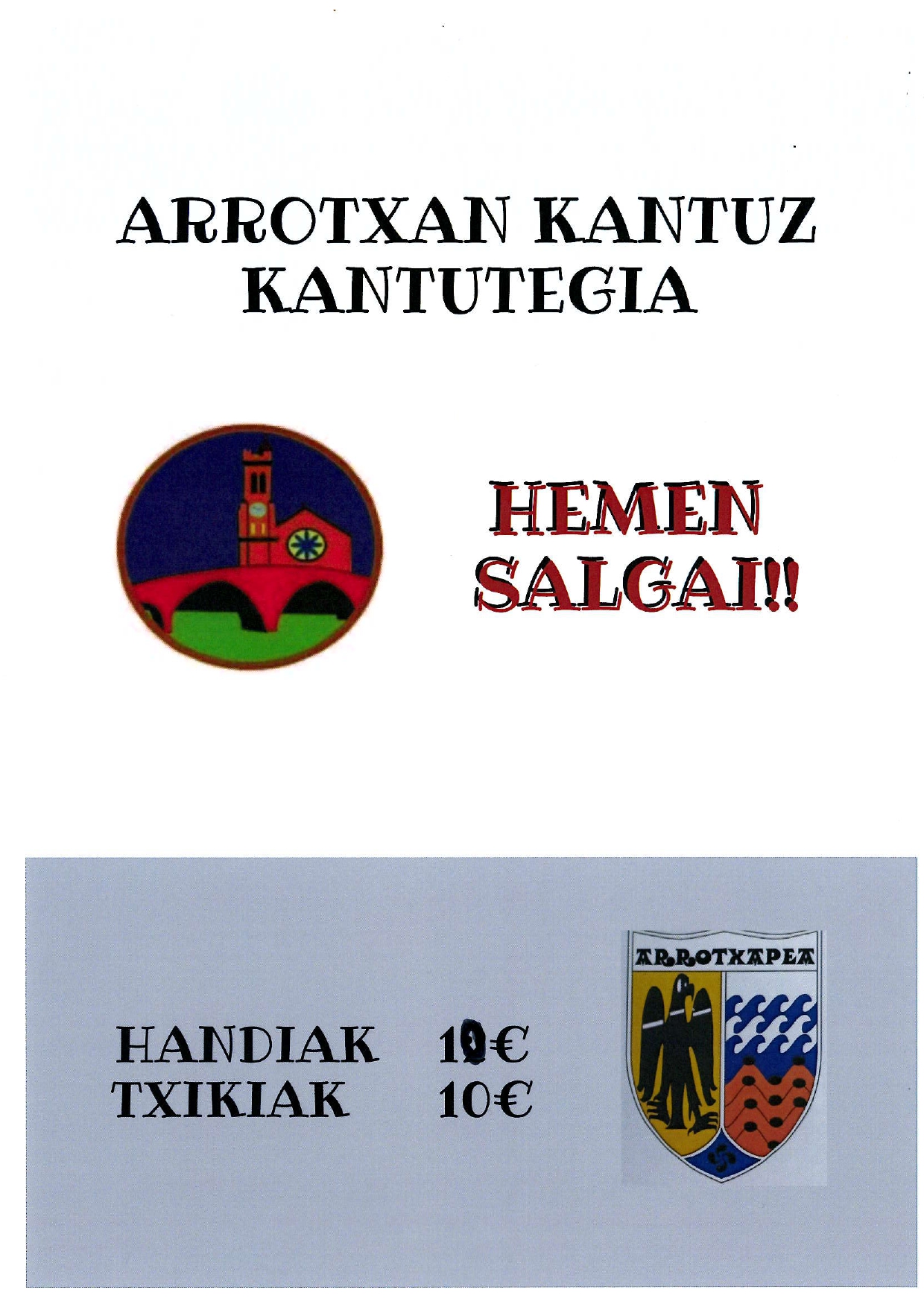 Auzoko Arrotxan Kantuz kantu taldeak –Santa Agedan eta urtean zehar kaleak girotzera ateratzen den taldeak– kantutegi bat prestatu du, eta eskolan salgai dugu 10 eurotan.